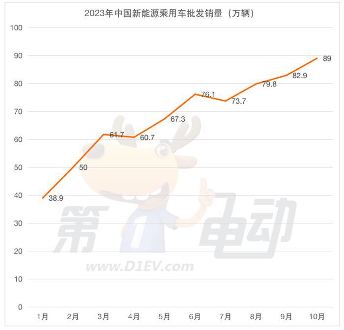 根据乘联会预测数据,10月新能源乘用车厂商批发销量89万辆,同比增长32%,环比增长7%。初步测算今年1-10月批发销量680万辆,同比增长36%。