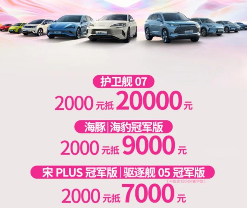因此,比亚迪也在放榜销量后迅速做出回应,为求冲击300万销量目标。11月1日起,护卫舰07可享2000抵20000元,海豚可享2000抵9000元,海豹冠军版可享2000抵9000元,宋PLUS冠军版可享2000抵7000元,驱逐舰05冠军版可享2000抵7000元。海洋网车型的“全军出击”,意图明显。