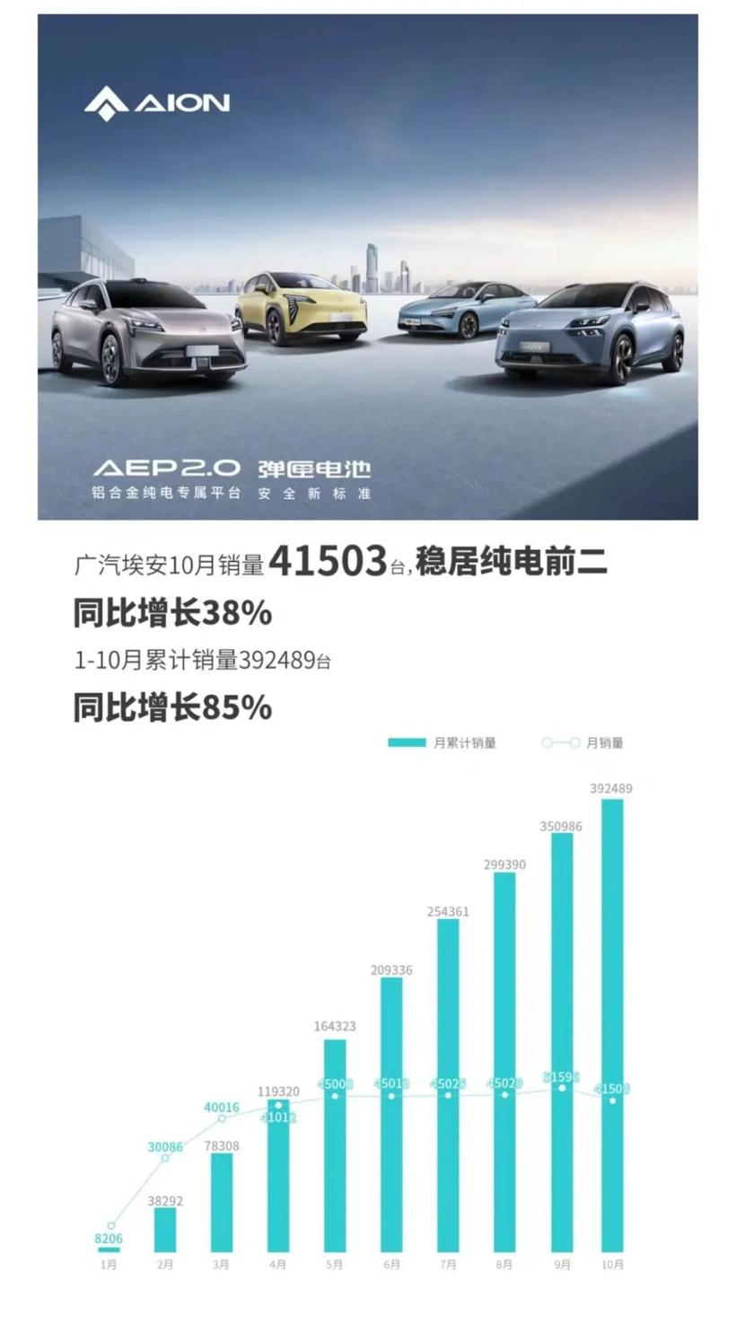 从广汽埃安公布的10月交付量来看,其增势依旧明显。