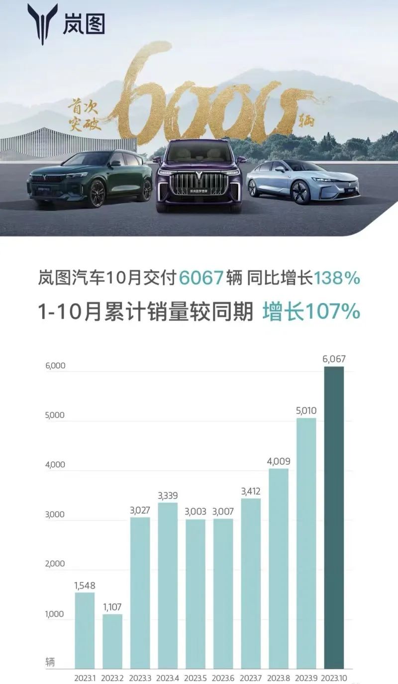 共计交付41,503辆,同比逆市增长38%,稳居新能源市场前三,纯电市场前二。而今年1-10月累计销量392,489辆,同比增长85%,距离今年年初定下的50万辆年度销量目标仅一步之遥,完成率已接近80%。