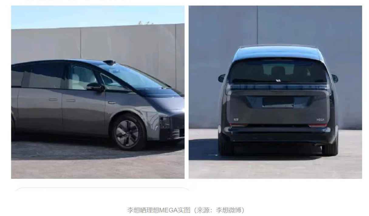 在此基础上,理想汽车计划于年底正式推出首款纯电MPV理想MEGA。10月中旬,李想已经在社交媒体平台上发布了MEGA实车图,从图片来看,新车拥有类似子弹头列车的设计风格,车顶有明显凸起,猜测或安装激光雷达。另据了解,MEGA还将搭载英伟达Orin X芯片,以及毫米波雷达和高清视觉摄像头等驾驶辅助相关硬件。
