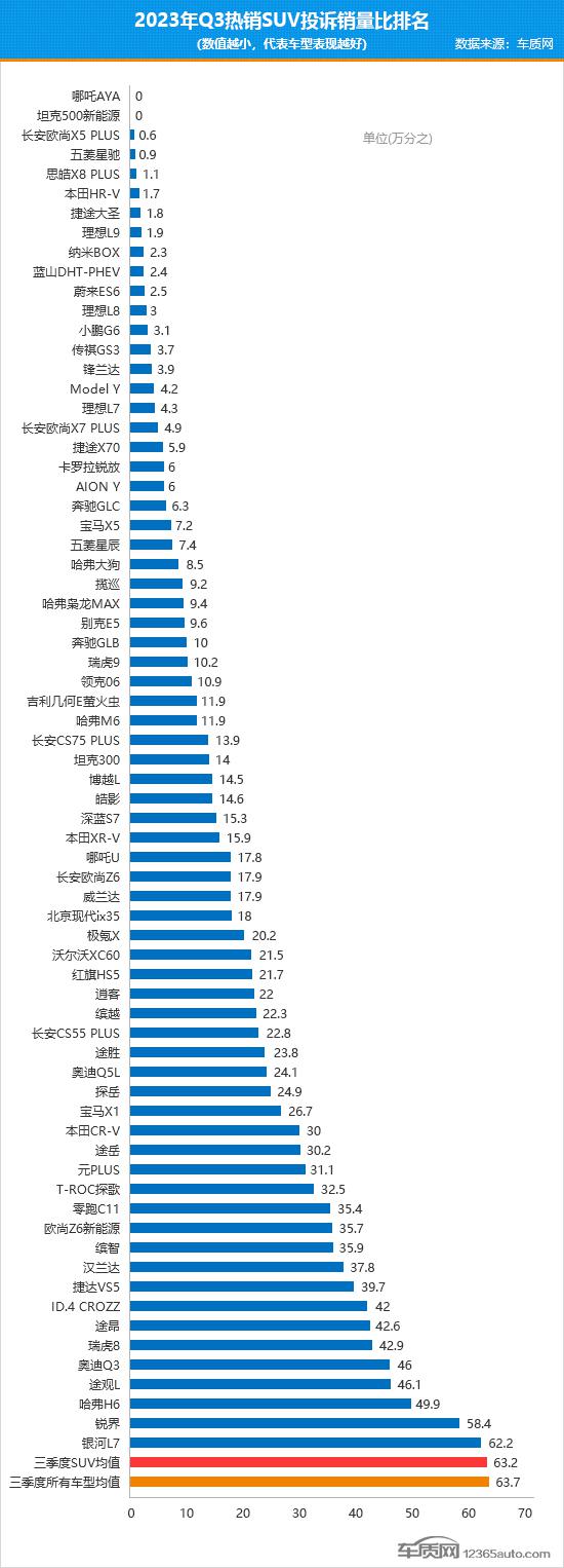 2023年三季度热销SUV投诉销量比排行