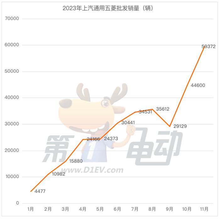 11月车企新能源批发销量榜:五菱逼近6万辆重回前五 赛力斯首破2万辆跻身前十