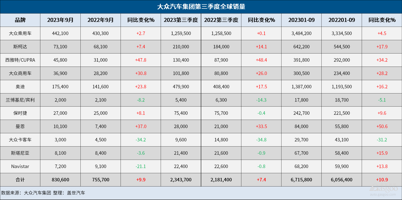 大众集团Q3成绩单:全球销量增长7.4%,纯电销量大涨40.5%