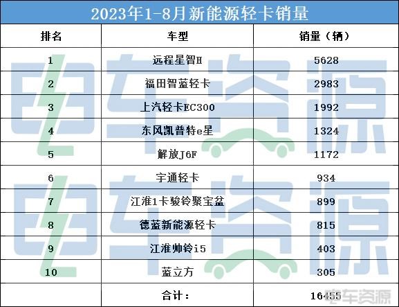 从数据上看,目前新能源轻卡市场一共五款车型总销量破千,分别是远程星智H、福田智蓝轻卡、上汽轻卡EC300、东风凯普特e星和解放J6F。今年1-8月新能源轻卡总销量为20445辆,前十总销量达到16455,占比达到了80.48%,预计今年销量破千的车型有8款。