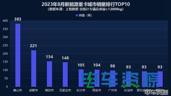 在8月的城市销量中,唐山市销售383辆,蝉联冠军。