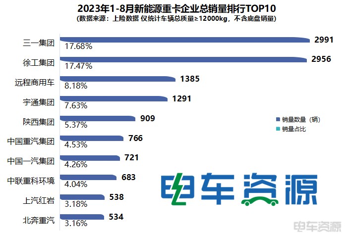 16920辆!前8月新能源重卡增25% 8月同增52% 徐工夺冠 唐山第一