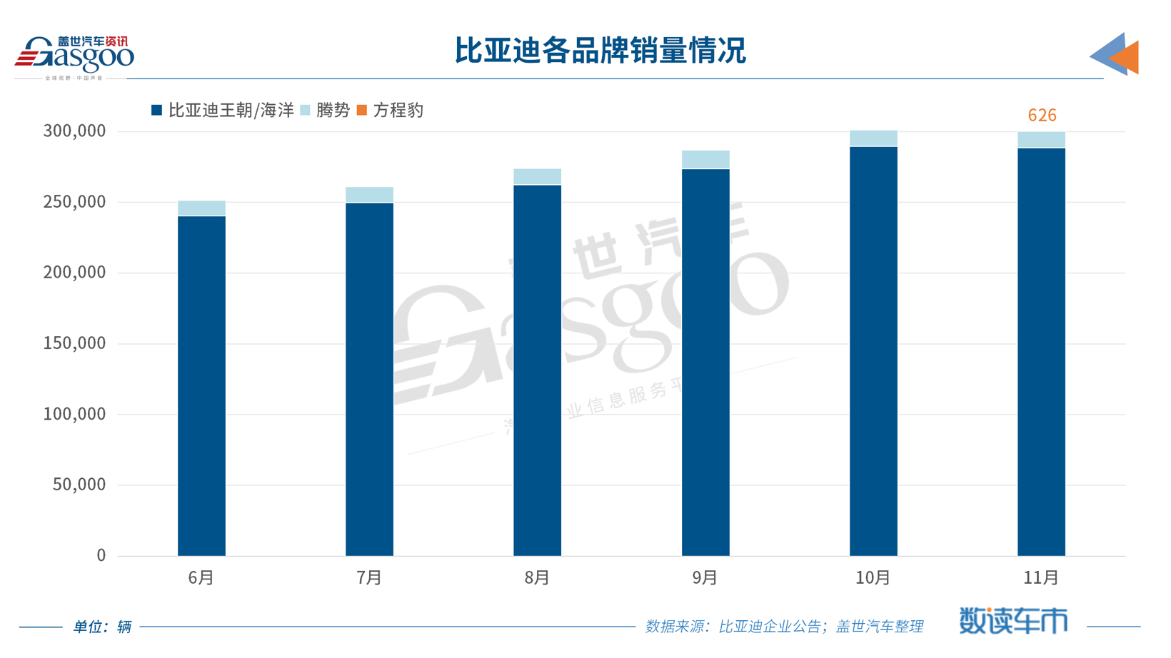 其中,比亚迪11月共销售301,378 辆新能源乘用车,几乎与上一月持平,较去年同期保持了38.57%的增幅。