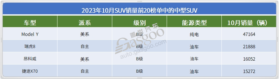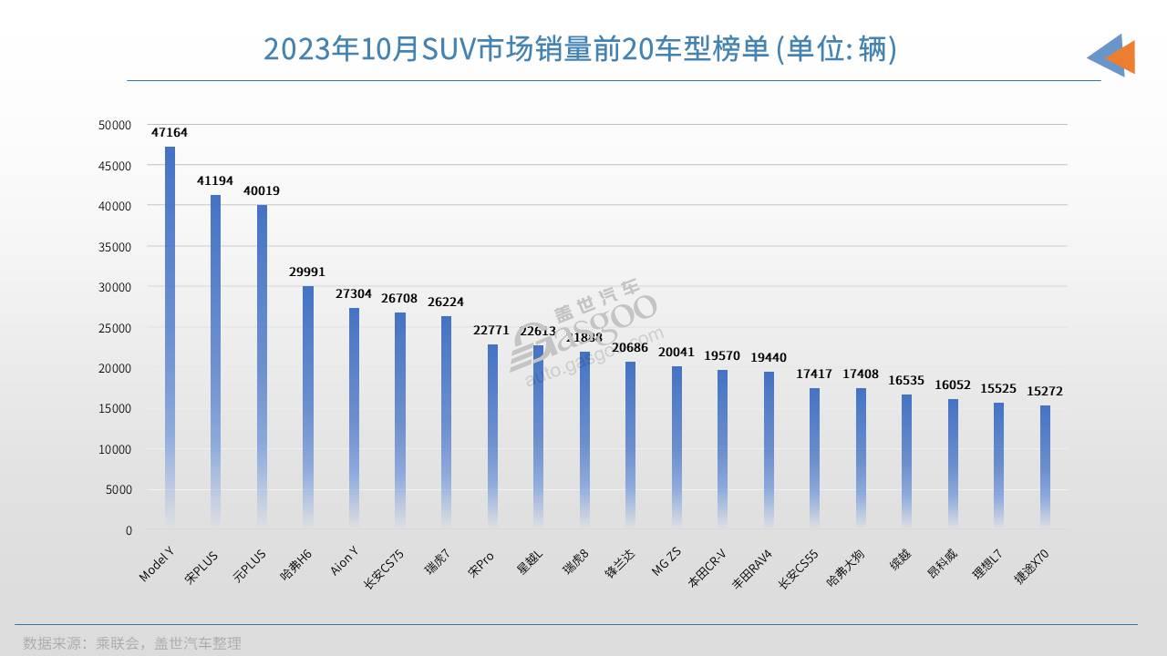 10月SUV市场销量TOP20:新能源市场“大乱斗”,三款车月销超4万辆