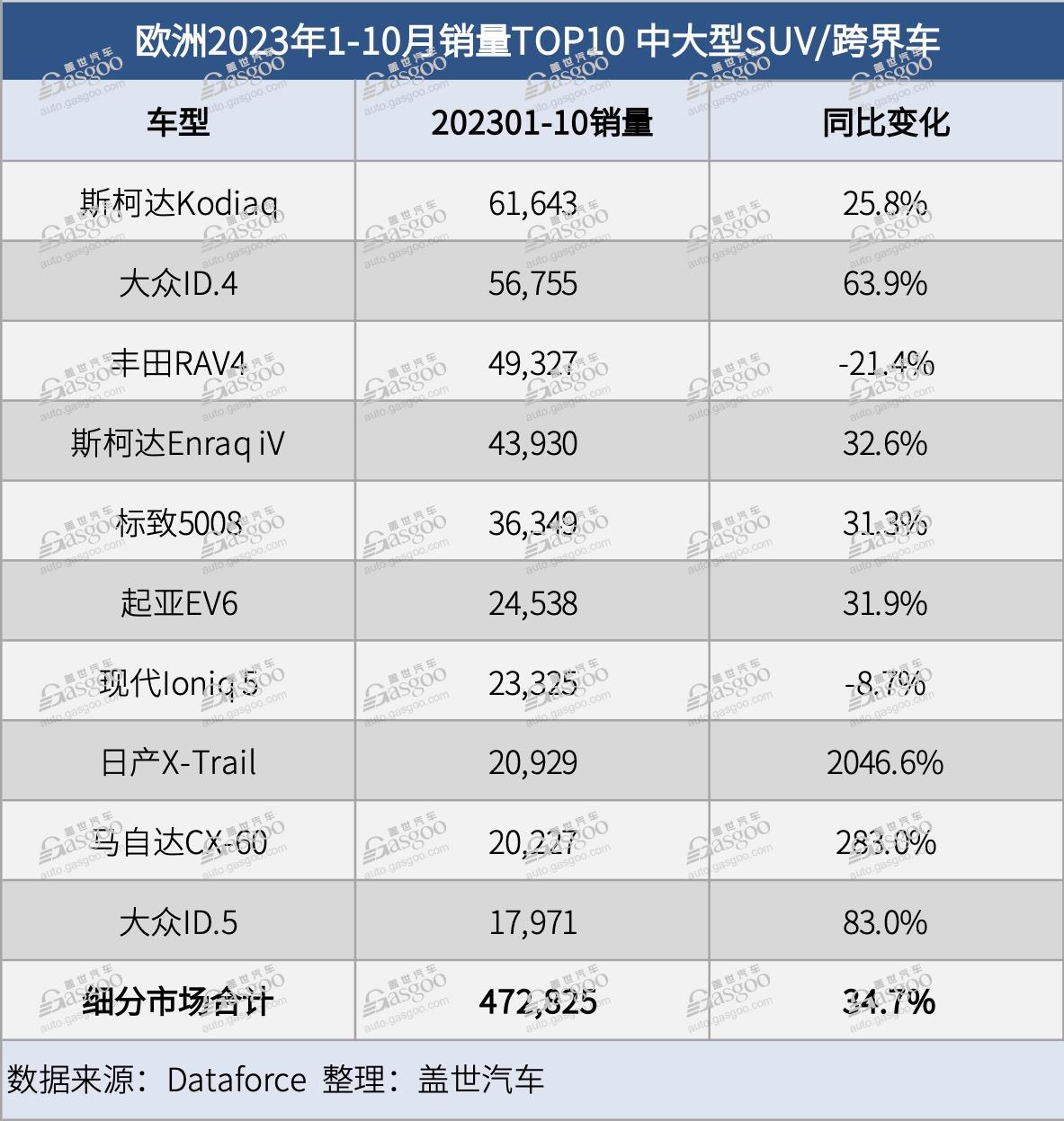 欧洲前10月SUV市场表现亮眼