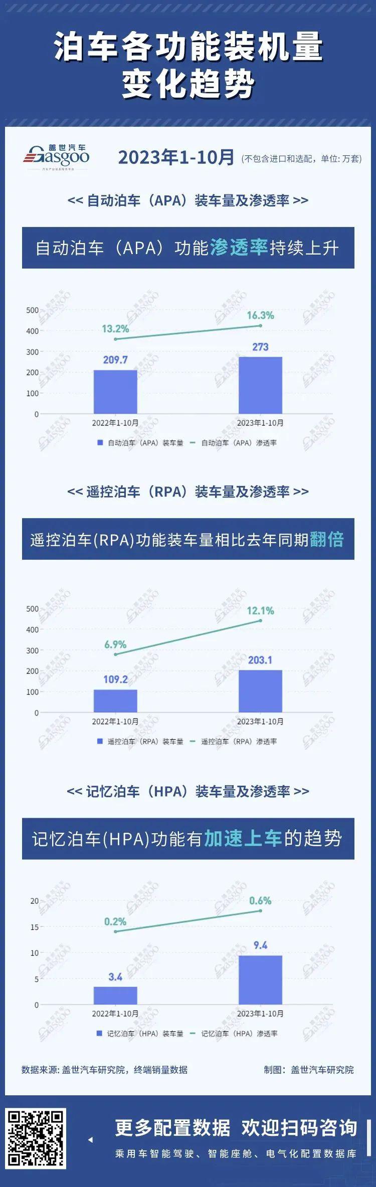 超过15%的乘用车配备自动泊车功能 | 盖世汽车配置数据库