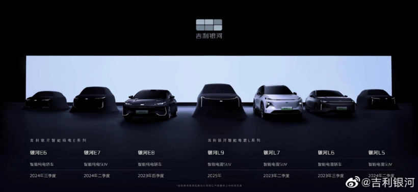 银河品牌明年的重点,是混动、纯电两手抓,而且两手都要硬,在纯电车型中,E8 已经打响第一枪,明年还会有纯电 SUV E7、纯电轿车 E6、电混 SUV L5,产品规划和节奏相当密集,增长空间也非常大。