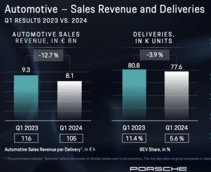 纯电车型的掣肘下,保时捷销量持续下滑,这也导致了保时捷在财报上的失意。