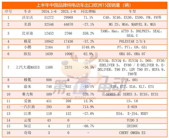 上半年那些出口欧洲的中国纯电动车销量怎么样?