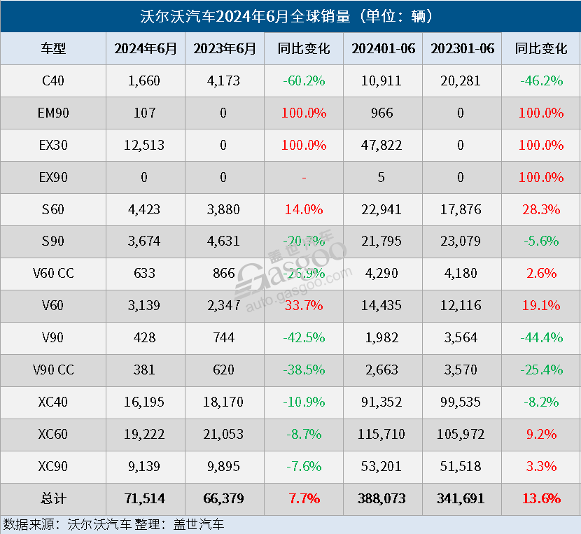 就今年前六个月来看,沃尔沃汽车全球总销量为388,073辆,与2023年同期相比增长了14%。